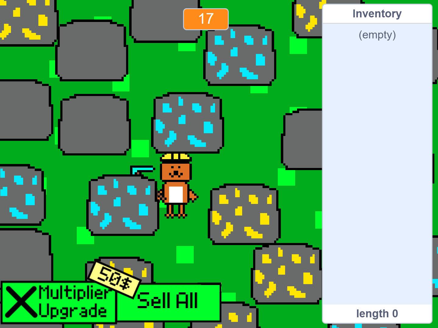 A chaotic minimal game jam experience where you control a fox and mine rocks, gold, and diamonds!