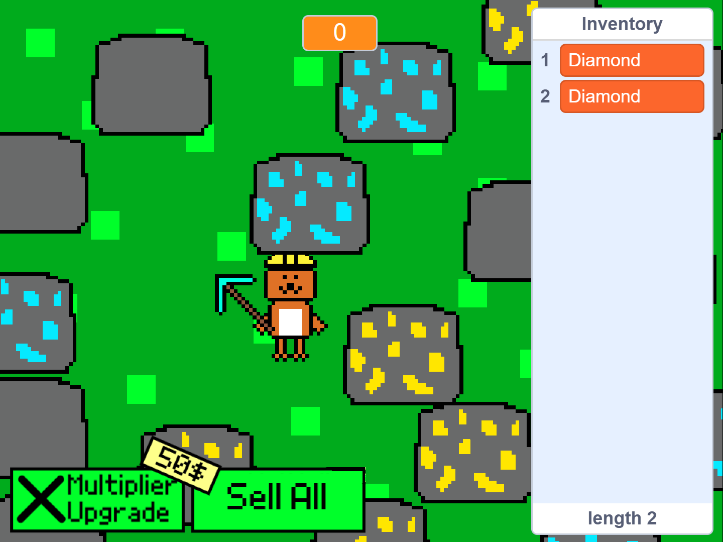 - Press the Spacebar to mine rocks, gold, or diamonds.